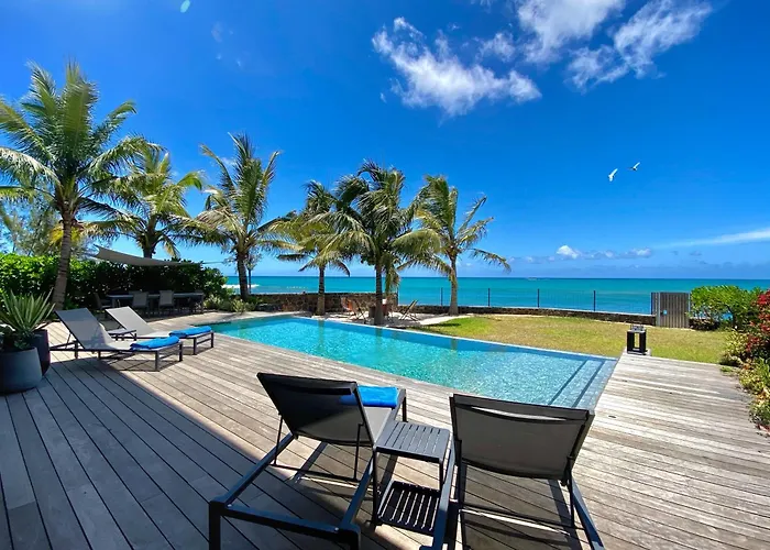 Das 200 m² große Outstanding Waterfront Apartment Grand Baie liegt in unmittelbarer Nähe von verschiedenen Sehenswürdigkeiten der Gegend: Pointe d' Azur befindet sich unter anderem etwa 5 Gehminuten von hier entfernt. Dieses am Strand Apartment bietet eine Terrasse mit Blick aufs Meer.